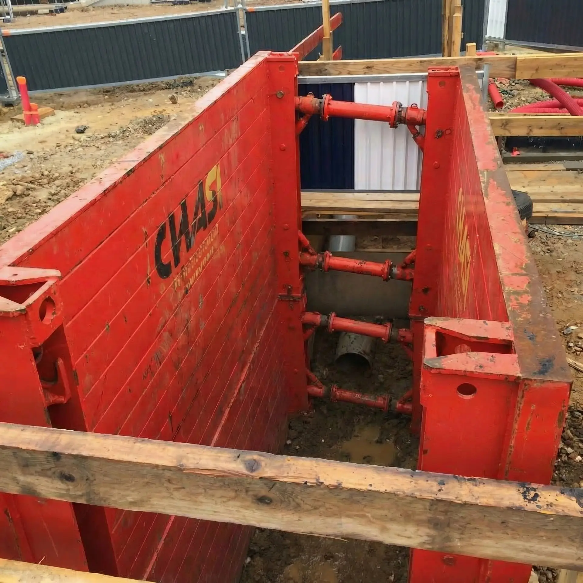 Nos caissons Magnum en acier de type VB offrent une solution de blindage robuste et performant sur tous types de chantiers. Particulièrement adaptés aux travaux de grande envergure, ils allient puissance, fiabilité et simplicité d’installation grâce à leur conception étudiée pour la sécurité des équipes et la stabilité des parois.