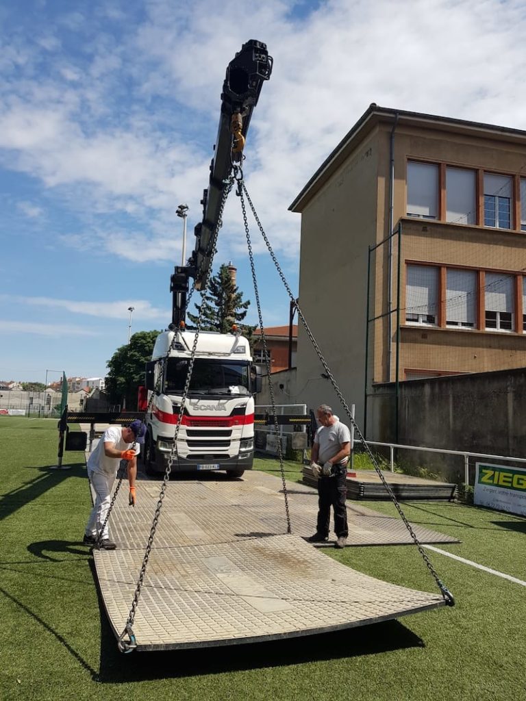Nos équipes interviennent de A à Z : transport, mise en place précise des plaques de roulage et repli complet après l’événement.